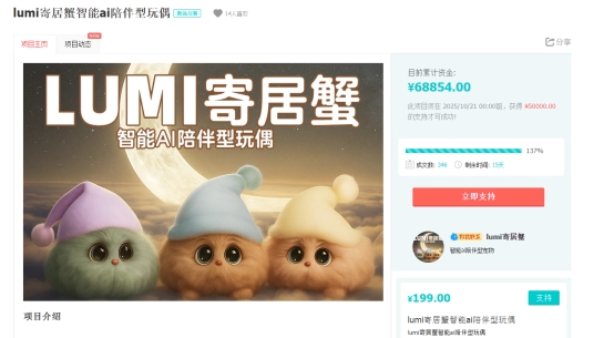目前,寄居蟹LUMI已开启众筹通道,以“重新定义陪伴”的创新姿态,邀请用户共同开启这场智能情感陪伴的新旅程。